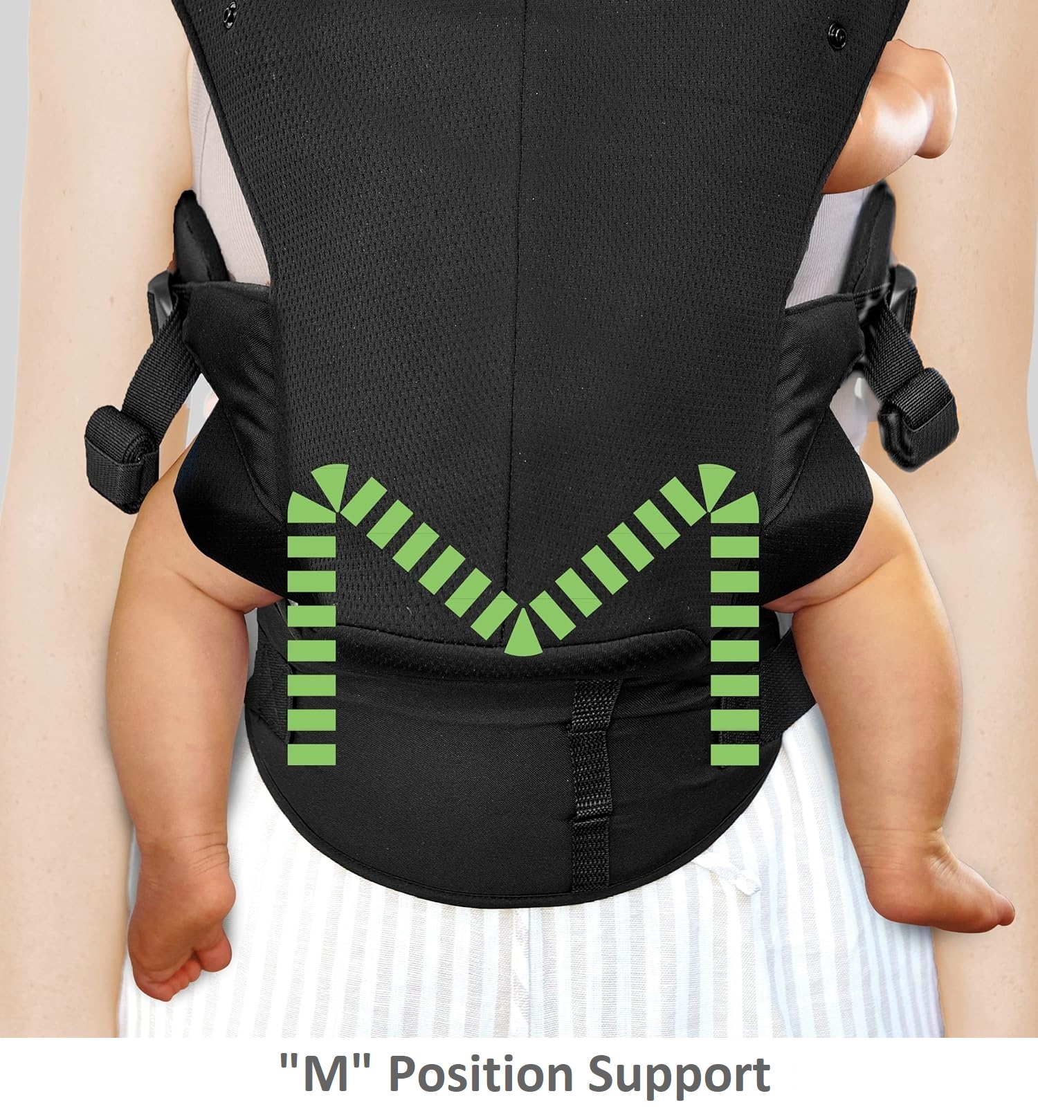 يشتمل الحامل ذو الهيكل الناعم على دعامة رأس مبطنة لحديثي الولادة ومقعد مصمم بشكل مريح مع ألواح أرجل قابلة للتعديل لتوفير ملاءمة قابلة للتخصيص ودعم بوضعية “M” لساقي الطفل ووركيه. حلقات تثبيت على الحامل تحافظ على الأغراض الصغيرة في متناول اليد.