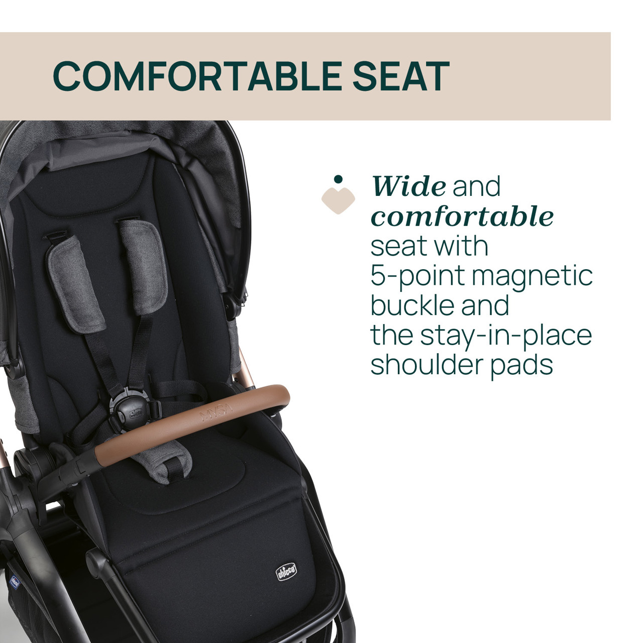 تتضمن عربة أطفال Mysa الجديدة تصميمًا متميزًا حائزًا على العديد من الجوائز وتجربة عافية كاملة لكل من الوالدين والطفل. يمكن تهيئة المقعد المتجانس منذ الولادة، ويمكن تهيئة المقعد في كل من الوجهين الأمامي والخلفي وهو قابل للإمالة بالكامل. يوفر المقعد العريض والمواد الفاخرة والعجلات المبطنة كل الراحة التي يحتاجها الأطفال الرضع، كما أنها عربة الأطفال التي لا يمكن أن تمر مرور الكرام. وتستمر تجربة الرفاهية مع عناصر الراحة الإضافية مثل الناموسية المدمجة وبطانة Cushy Hug المريحة.