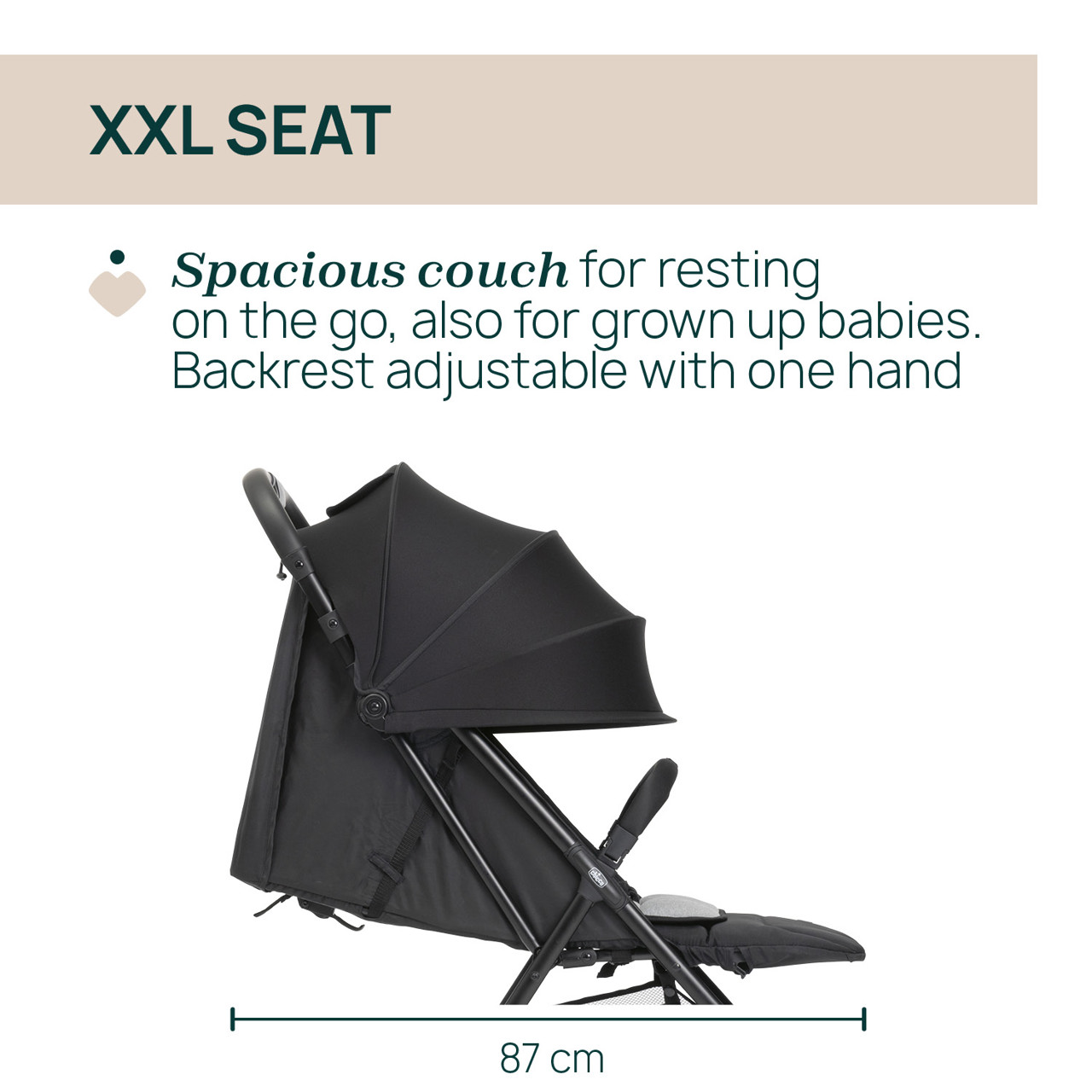 يتم ضمان أفضل قيلولة أثناء التنقل من خلال مسند الساقين الطويل جدًا ومسند الظهر الذي يخلق في وضع الاستلقاء أريكة واسعة حقًا للراحة. مسند الظهر قابل للتعديل بيد واحدة فقط للحصول على أفضل عملية.