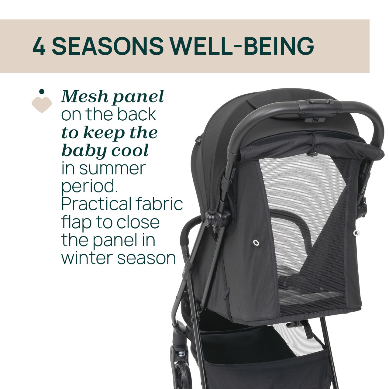 بطانة شبكية على الظهر لضمان تدفق الهواء المناسب والحفاظ على برودة الطفل في الأيام الحارة. لفترة الشتاء يمكن تغطية