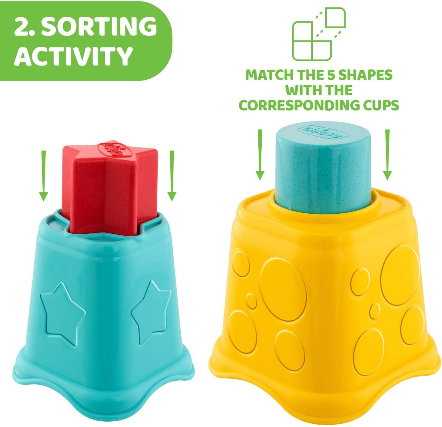 أكواب 2 في 1 بنسخة ECO + التي ستعلم طفلك طريقة جديدة للعب مع احترام البيئة.