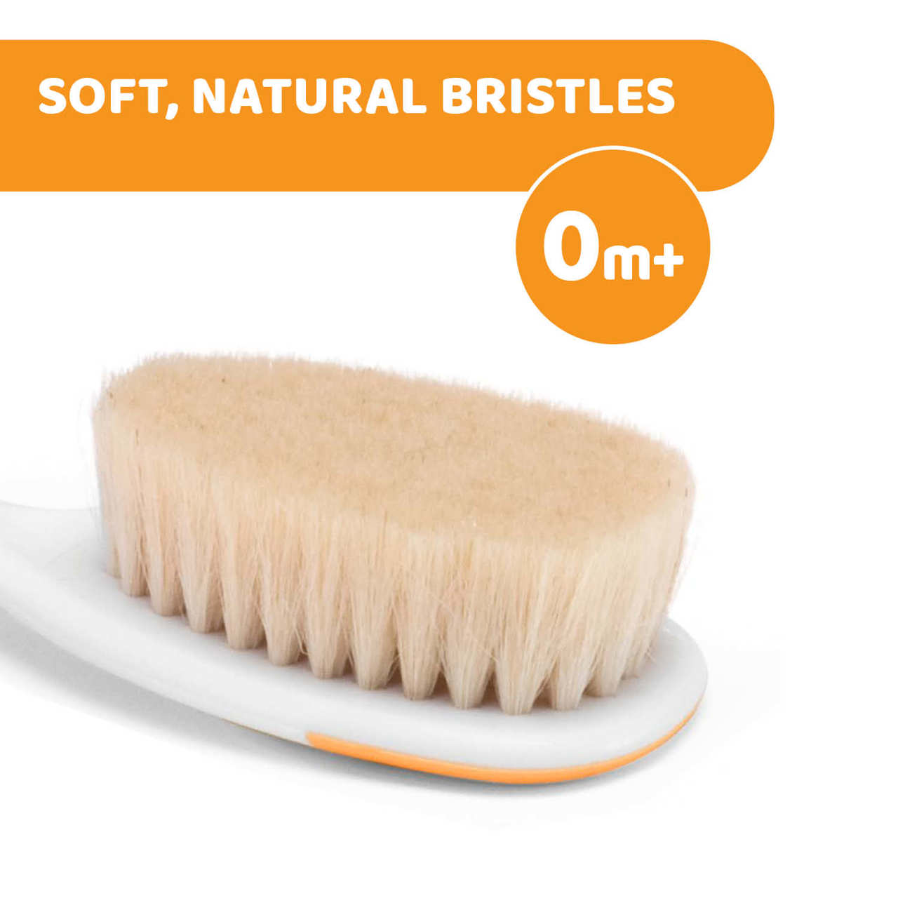 شيكو فرشاة ومشط طبيعي ناعم للطفل من شيكو أوم+ فرشاة ومشط آمن للنظافة.
