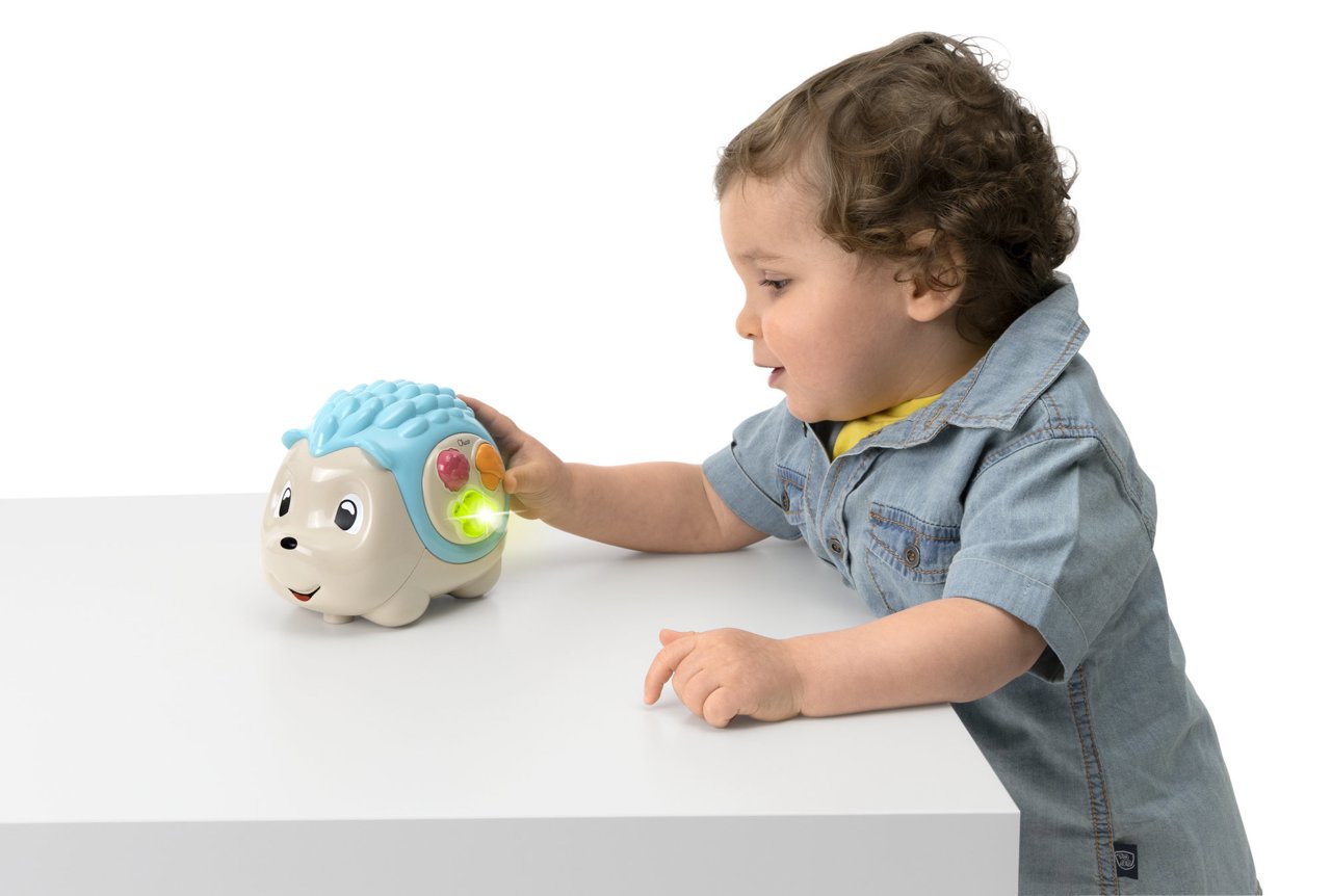 • A LOVELY FRIEND: Chicco sweet hedgehog features two interactive buttons, which activate lights and sounds. In the night mode, the hedgehog spikes light up, keeping baby company while sleeping