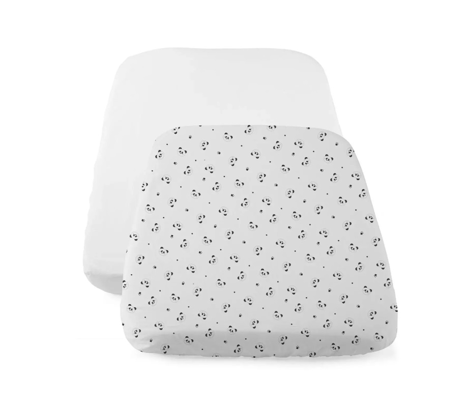 The crib set includes two fitted sheets: the top sheet and the bottom sheet with corners.