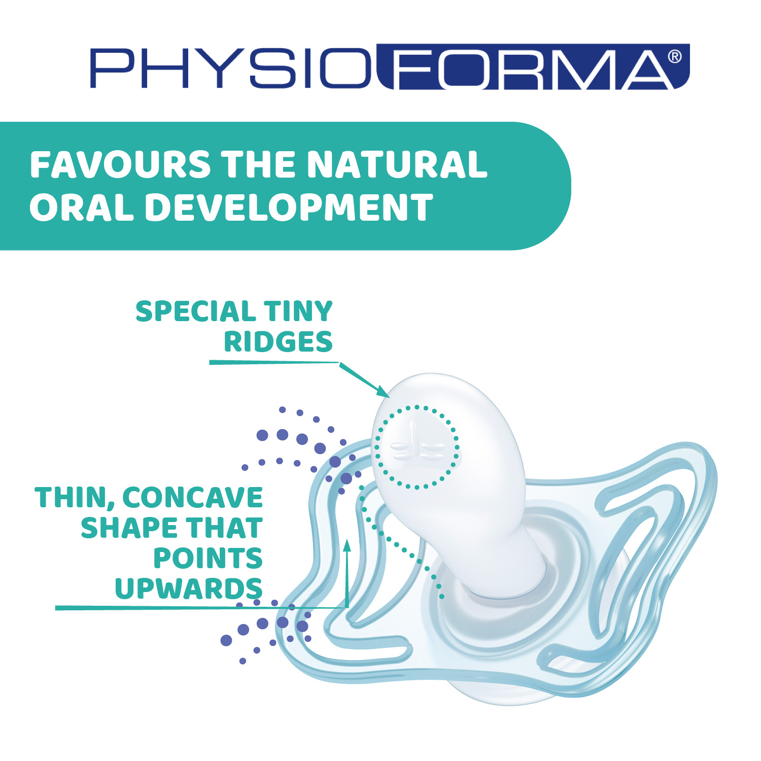PhysioForma is Chicco’s exclusive form which, by promoting the functions of the tongue, acts in the harmonious development of the mouth and supports the baby’s physiological breathing. PhysioForma was born from the collaboration between expert Orthodontists, Pediatricians and the Chicco Observatory and is the result of continuous tests to support its scientific validity.